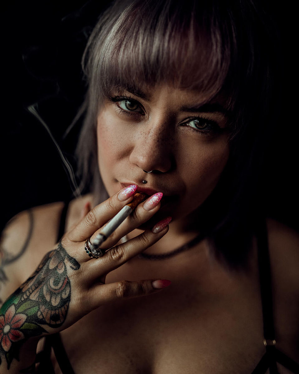 I would describe my look as “alternative” with many tattoos, piercings, and colorful hair, which makes me a good model for extraordinary and unique concepts.